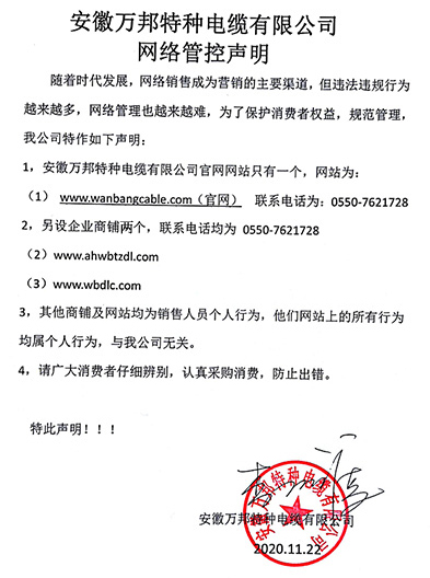 鄭重聲明:安徽萬邦特種電纜有限公司官方網站為:www_wanbangcable_com.ah-jiahe.cn,除此之外無任何子網站或合作網站,其余均為假冒偽劣。電話:0550-7621728 13485756353 地 址:安徽省天長市滁州高新技術產業開發區經四路29號